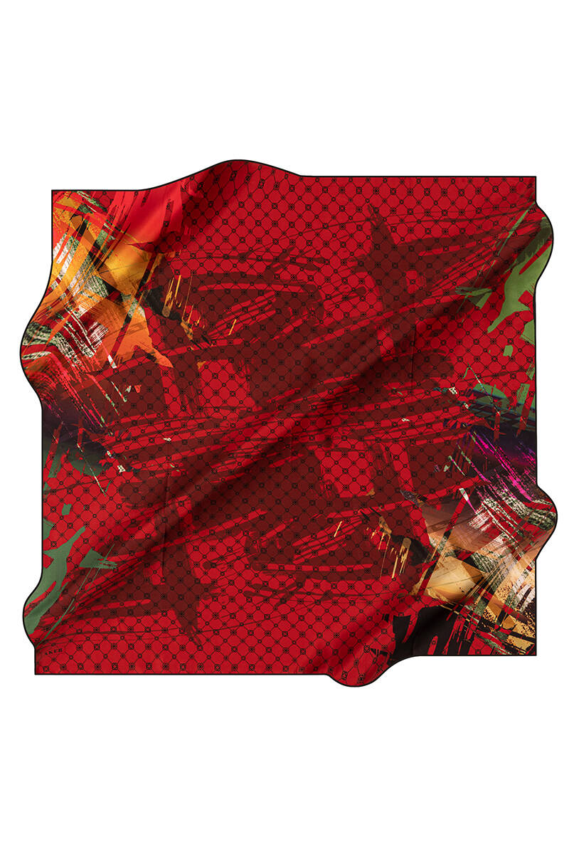 Logo Desenli 90X90 İpek Krep Saten Eşarp