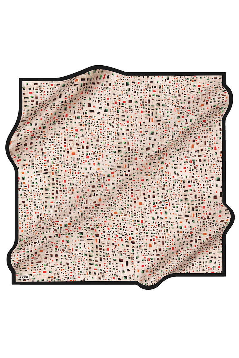 Geometrik Desenli 90X90 Aker İpek Krep Saten Eşarp