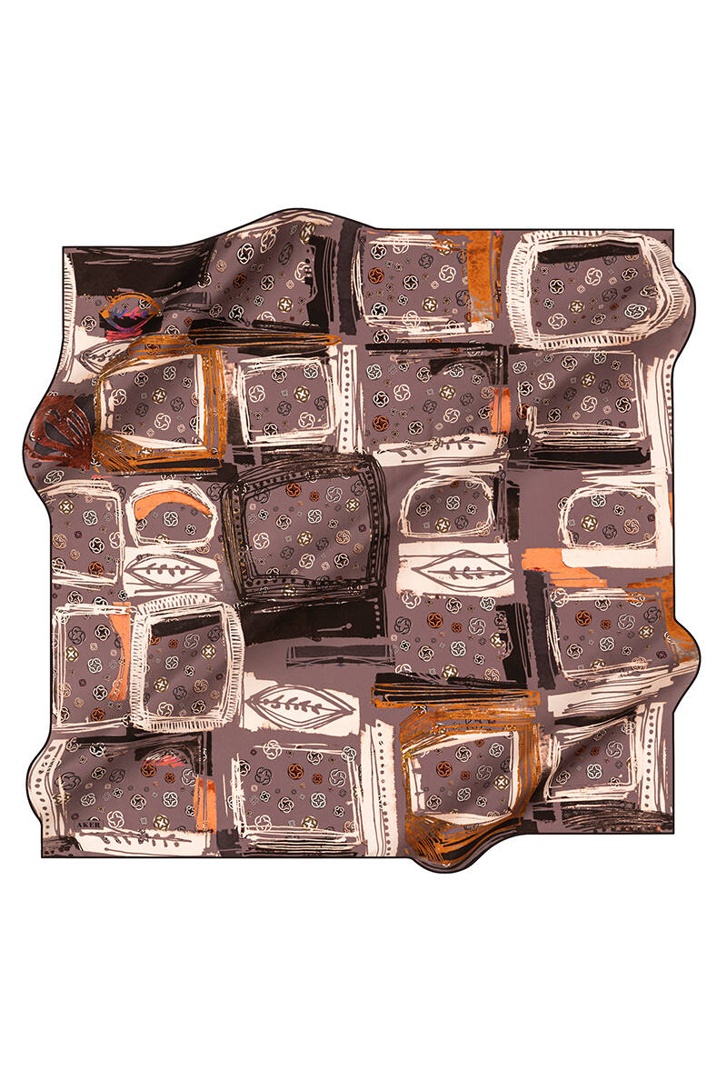 Logo Desenli 90X90 İpek Krep Saten Eşarp