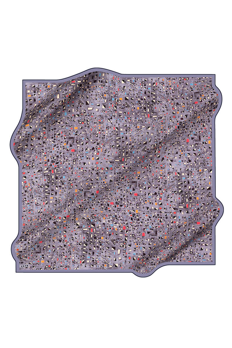 Geometrik Desenli 90X90 Aker İpek Krep Saten Eşarp