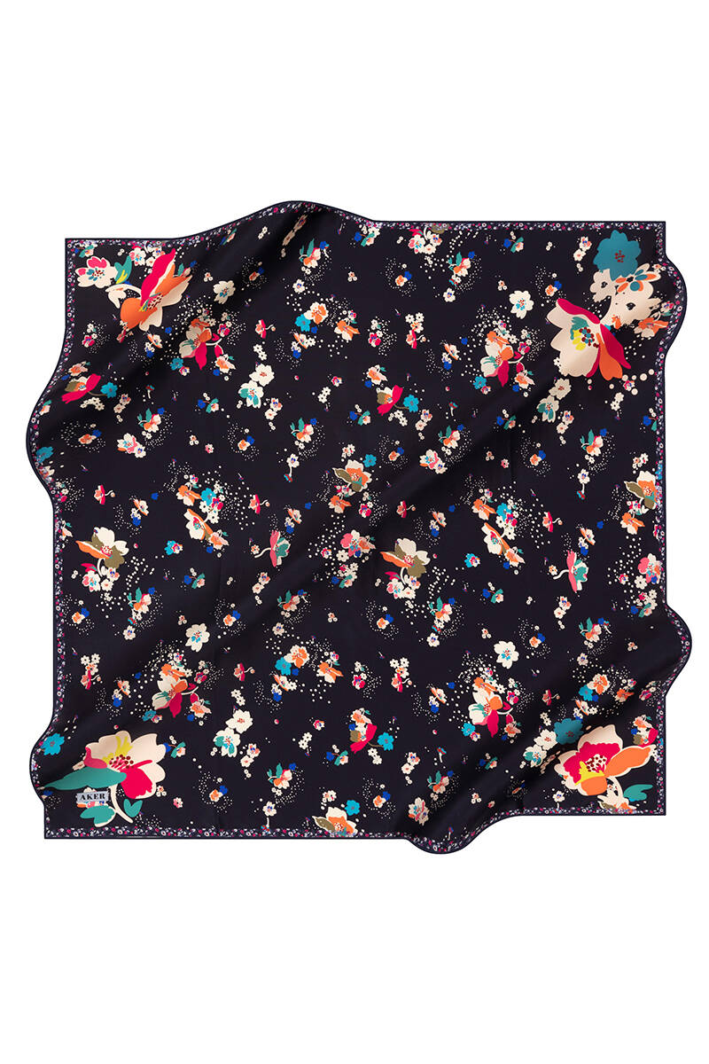 Çiçek Desenli 90X90 Aker İpek Krep Saten Eşarp