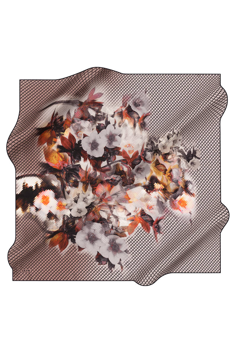Logo Desenli 90X90 İpek Krep Saten Eşarp