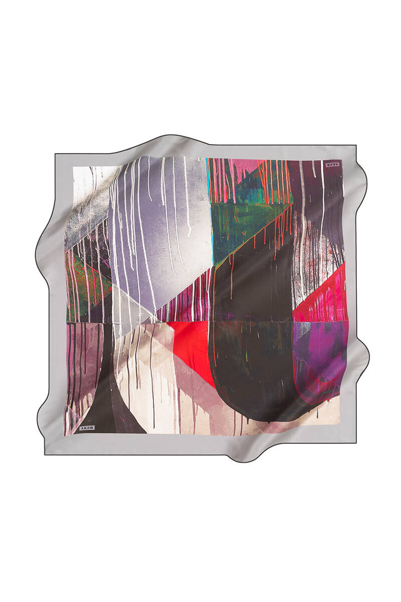 Logo Desenli 90X90 İpek Krep Saten Eşarp