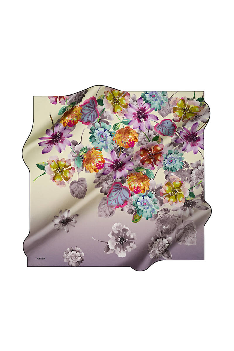 Çiçek Desenli 90X90 Aker İpek Tivil Eşarp