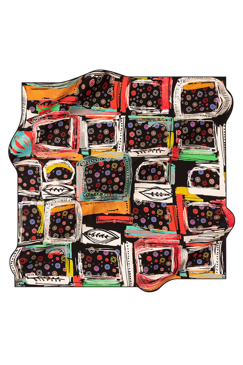 Logo Desenli 90X90 Aker İpek Tivil Eşarp