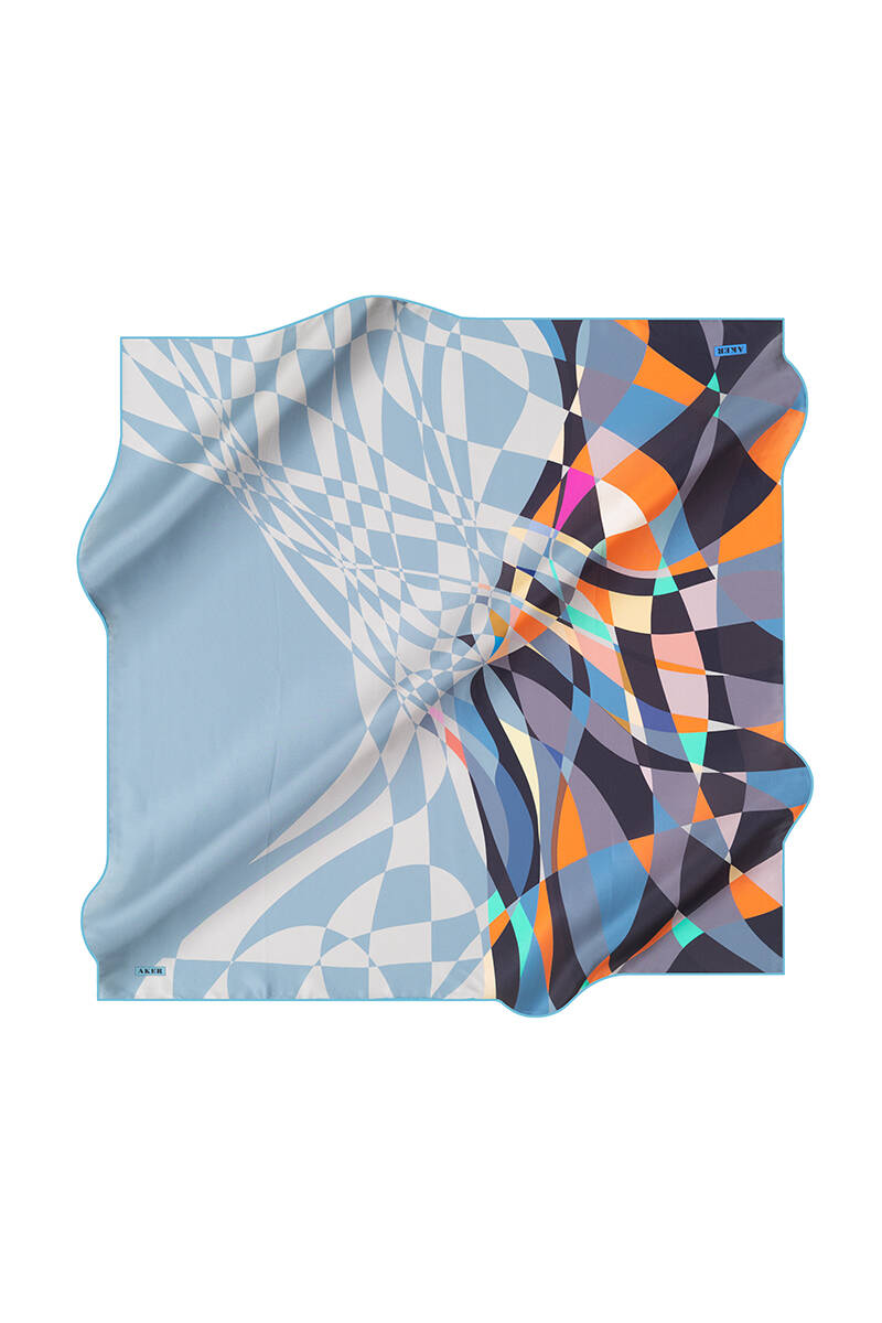 Geometrik Desenli 90X90 Aker İpek Tivil Eşarp