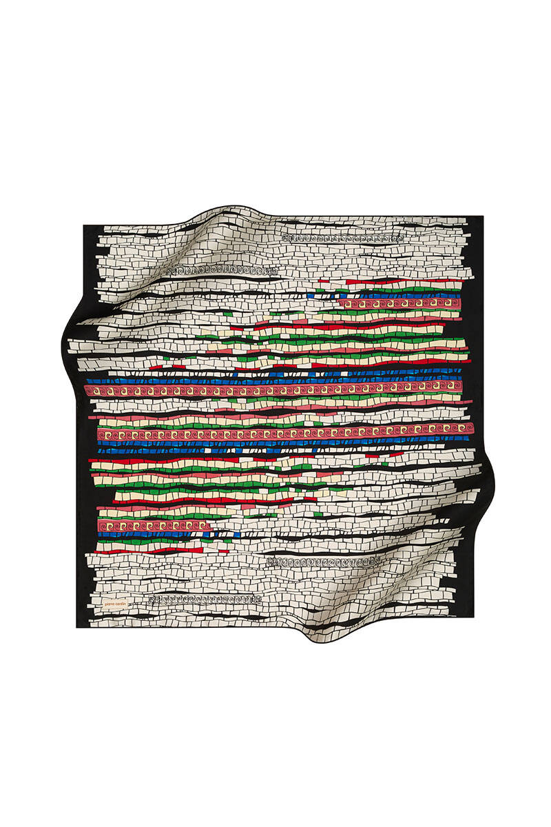Geometrik Desenli 90X90 Pierre Cardin Krep Saten Eşarp