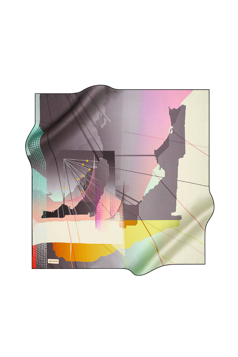 Geometrik Desenli 90X90 Pierre Cardin Krep Saten Eşarp