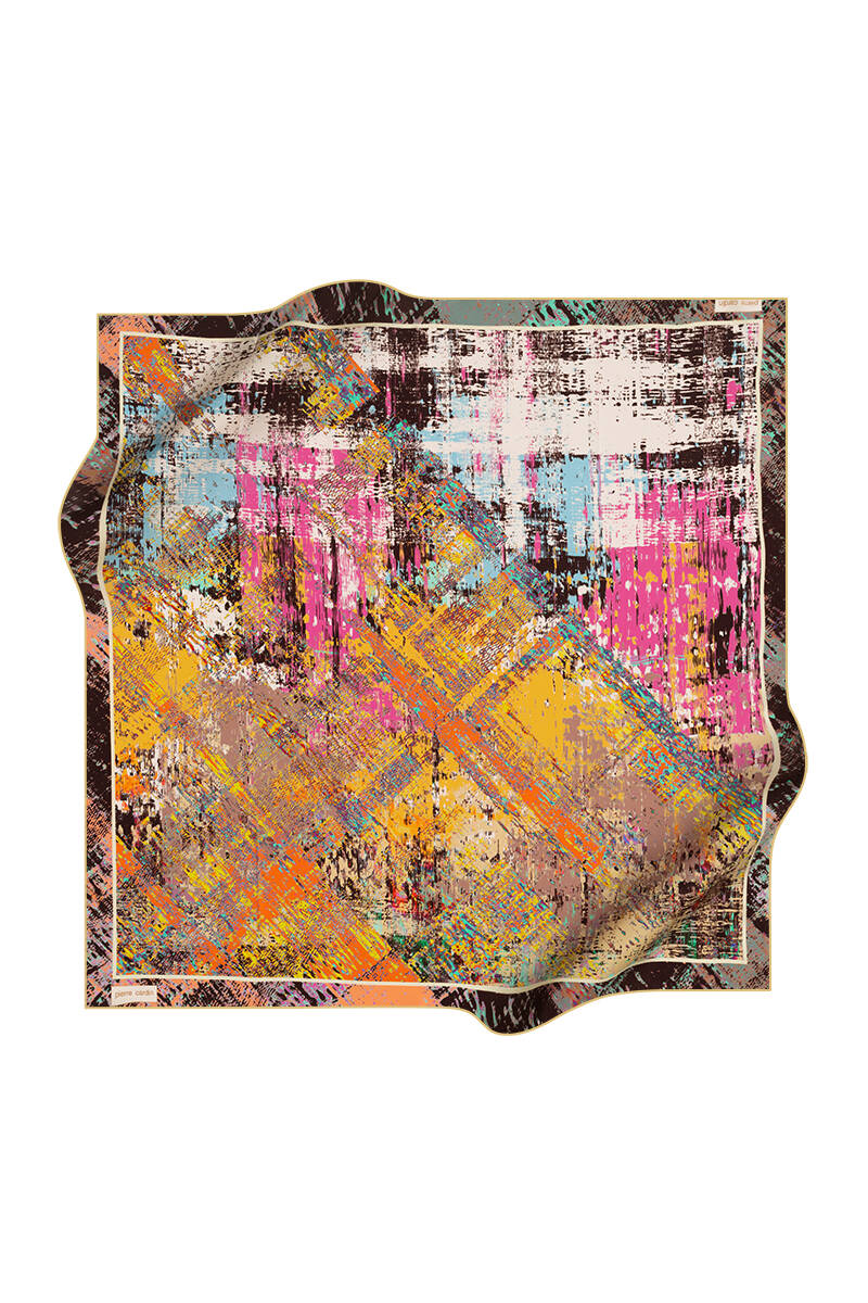 Fırça Desenli 90X90 İpek Krep Saten Eşarp