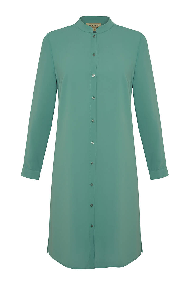 İndigo Dikiş Detaylı Hakim Yaka Tunik