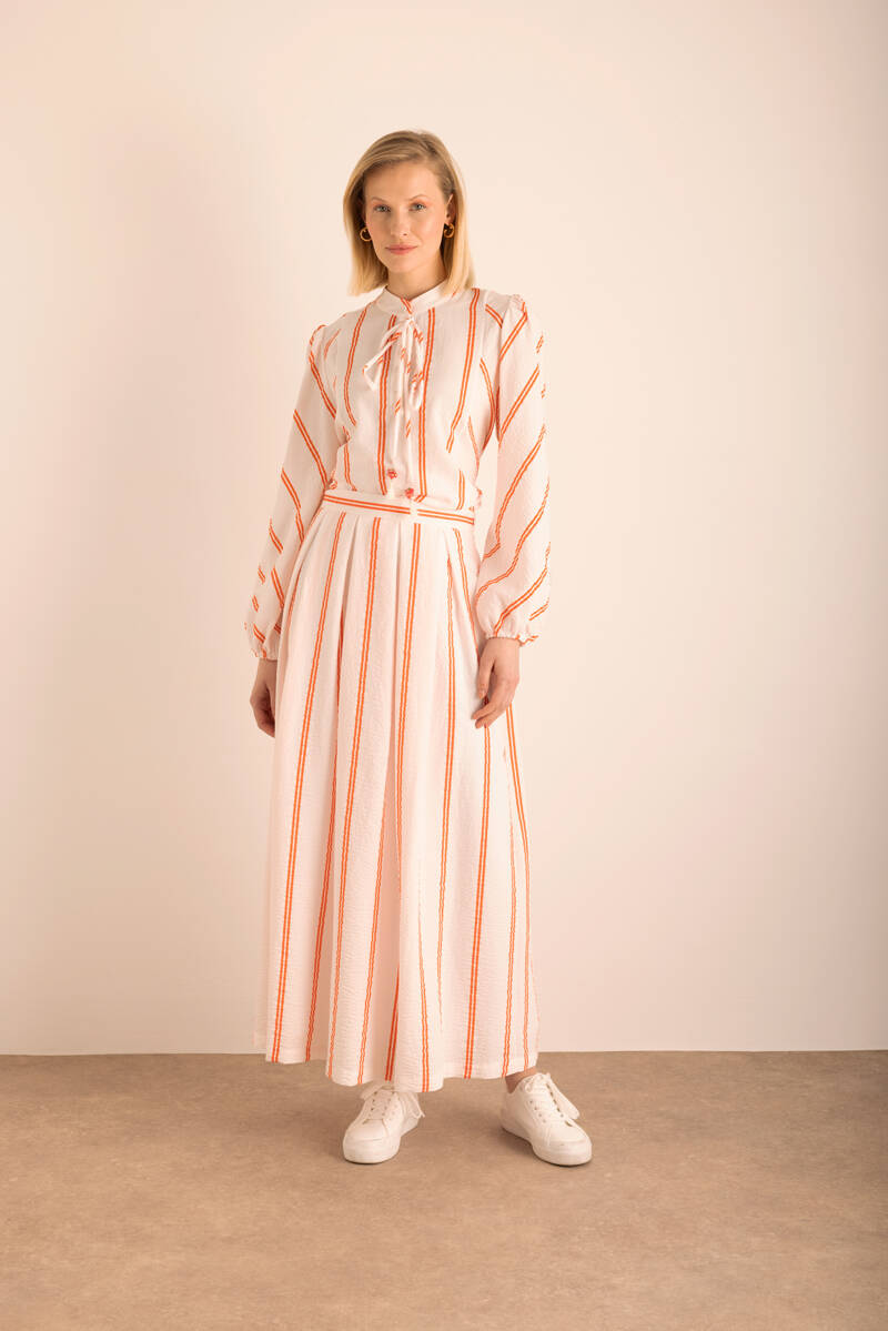 Renkli Çizgili Yakası Bağcıklı Tunik