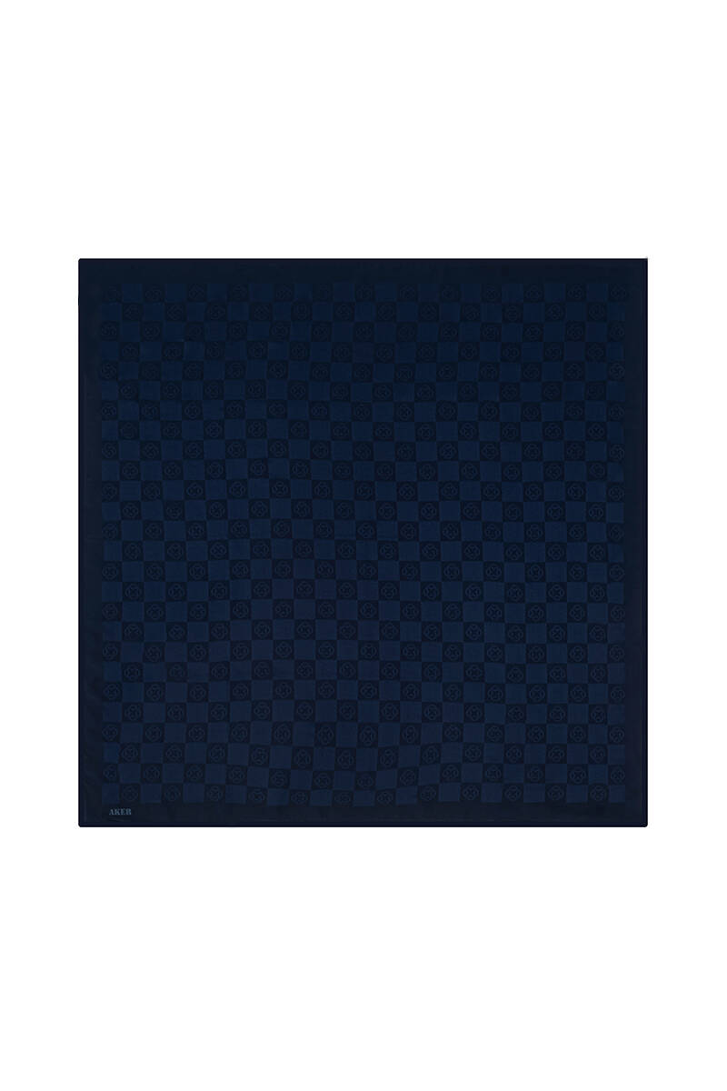Lacivert Monogram Jakar Eşarp