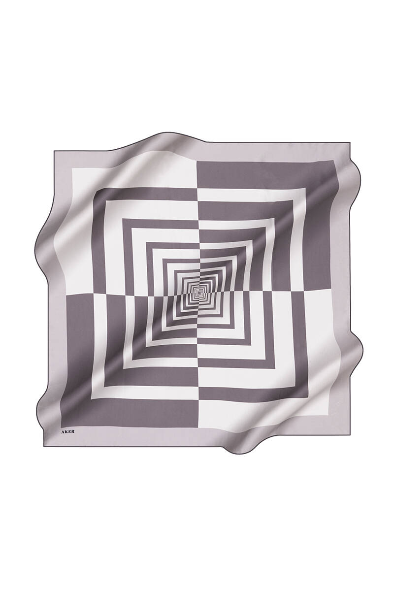 Geometrik Desenli 90X90 İpek Krep Saten Eşarp