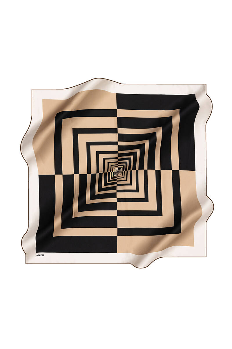 Geometrik Desenli 90X90 İpek Krep Saten Eşarp