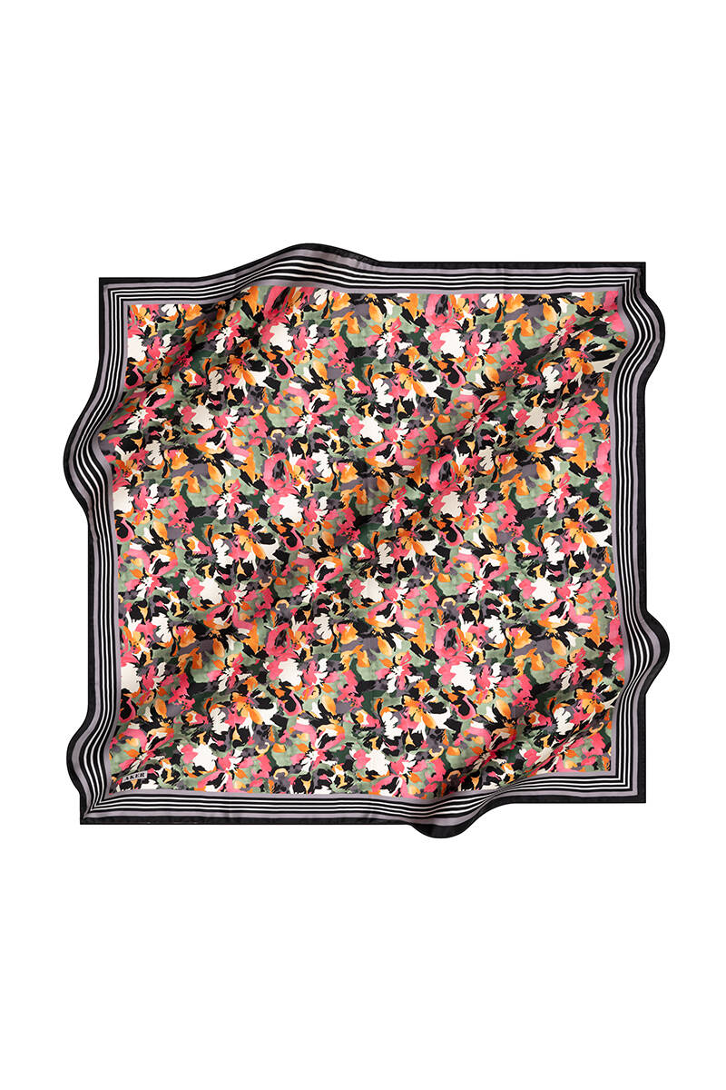 Çiçek Desenli 90X90 İpek Krep Saten Eşarp