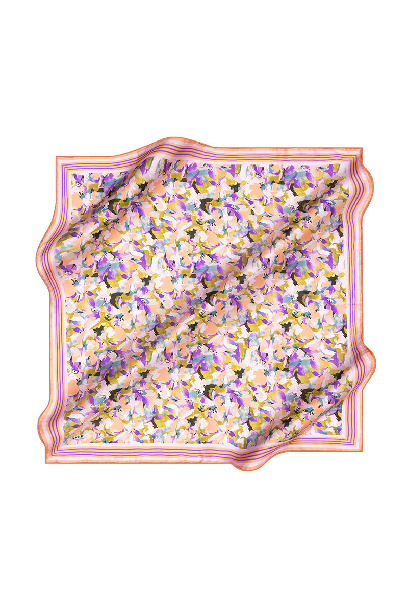 Çiçek Desenli 90X90 İpek Krep Saten Eşarp