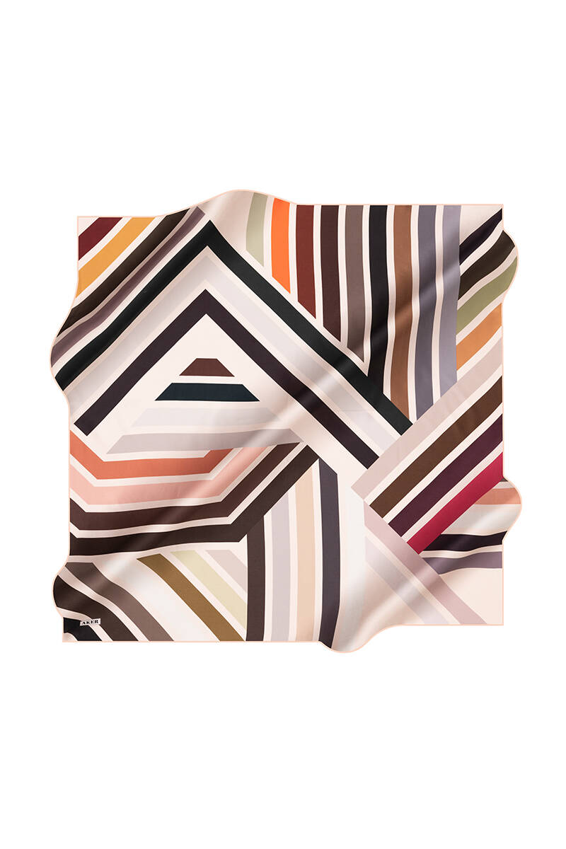Geometrik Desenli 90X90 İpek Krep Saten Eşarp