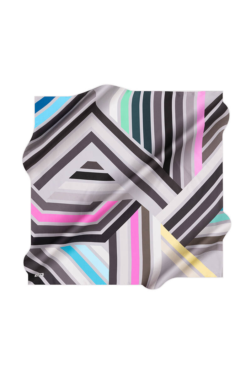 Geometrik Desenli 90X90 İpek Krep Saten Eşarp