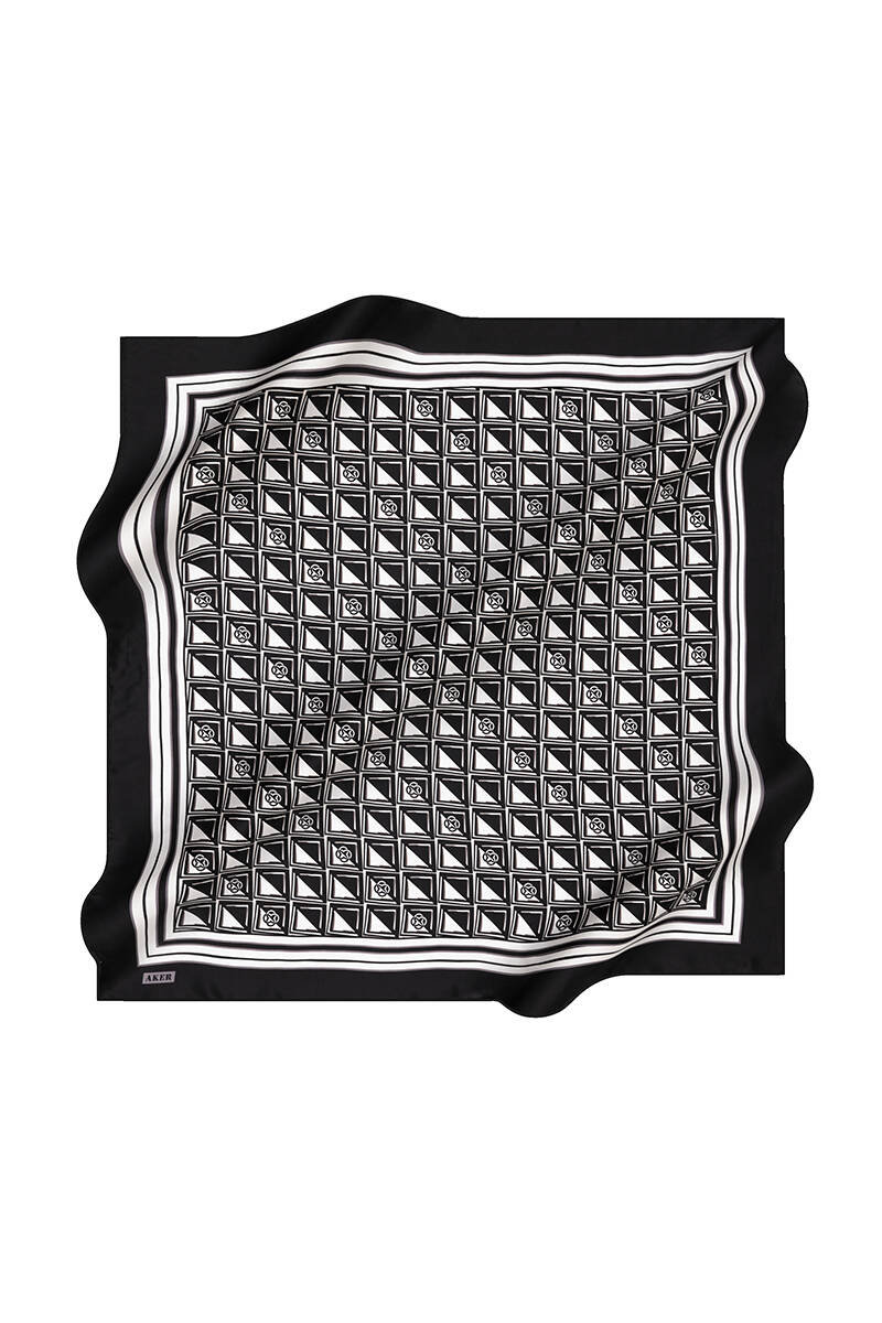 Logo Desenli 90X90 İpek Krep Saten Eşarp