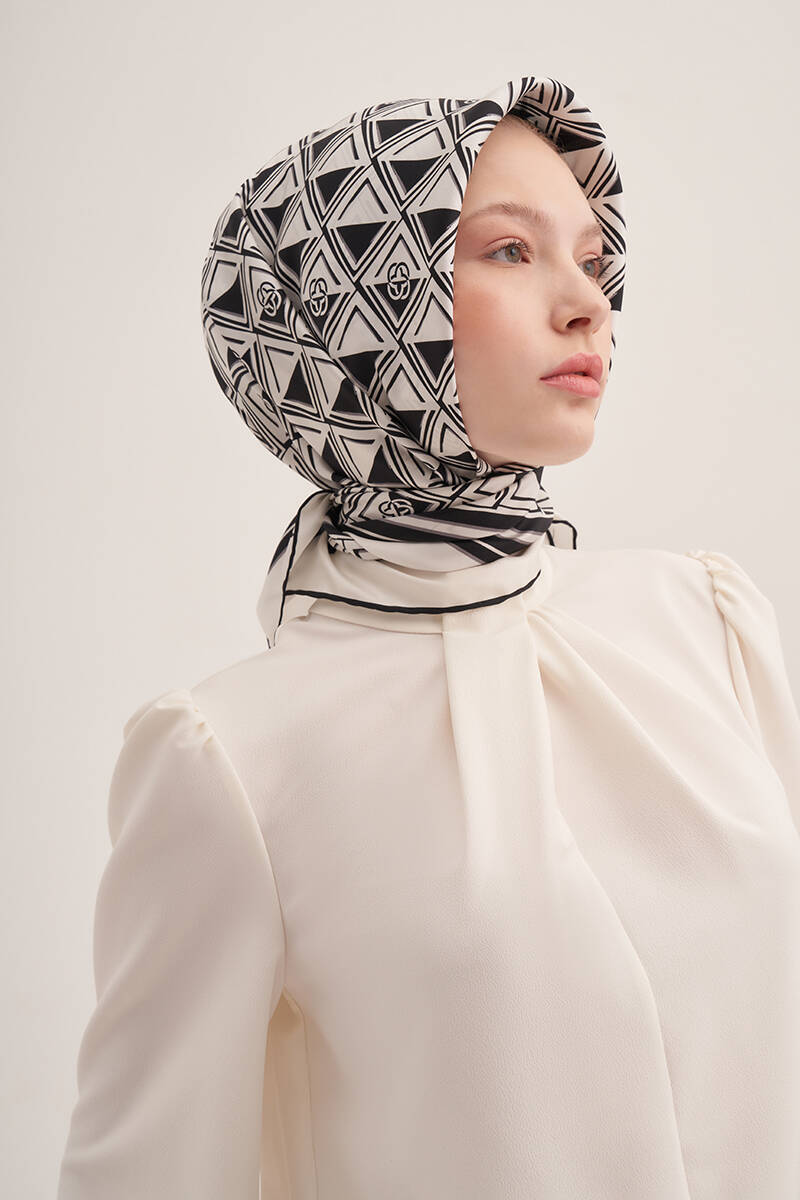 Logo Desenli 90X90 İpek Krep Saten Eşarp