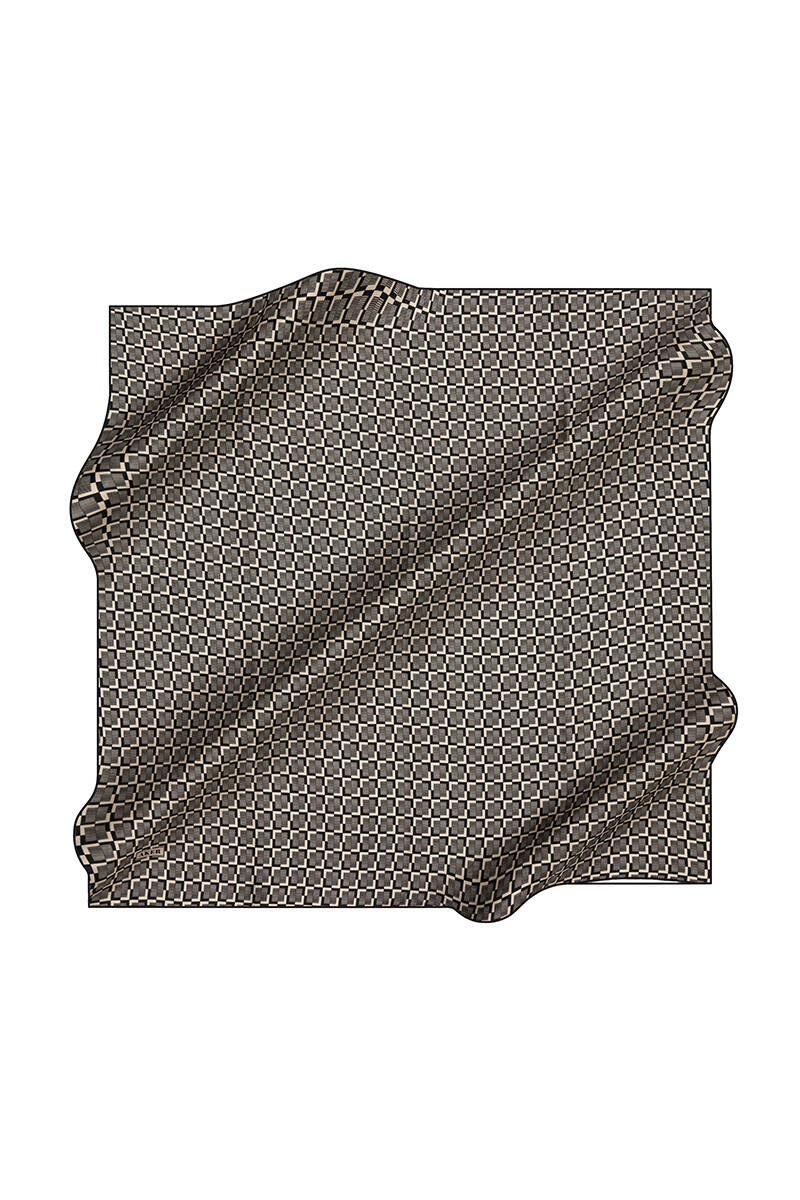 Geometrik Desenli İpek Krep Saten Eşarp
