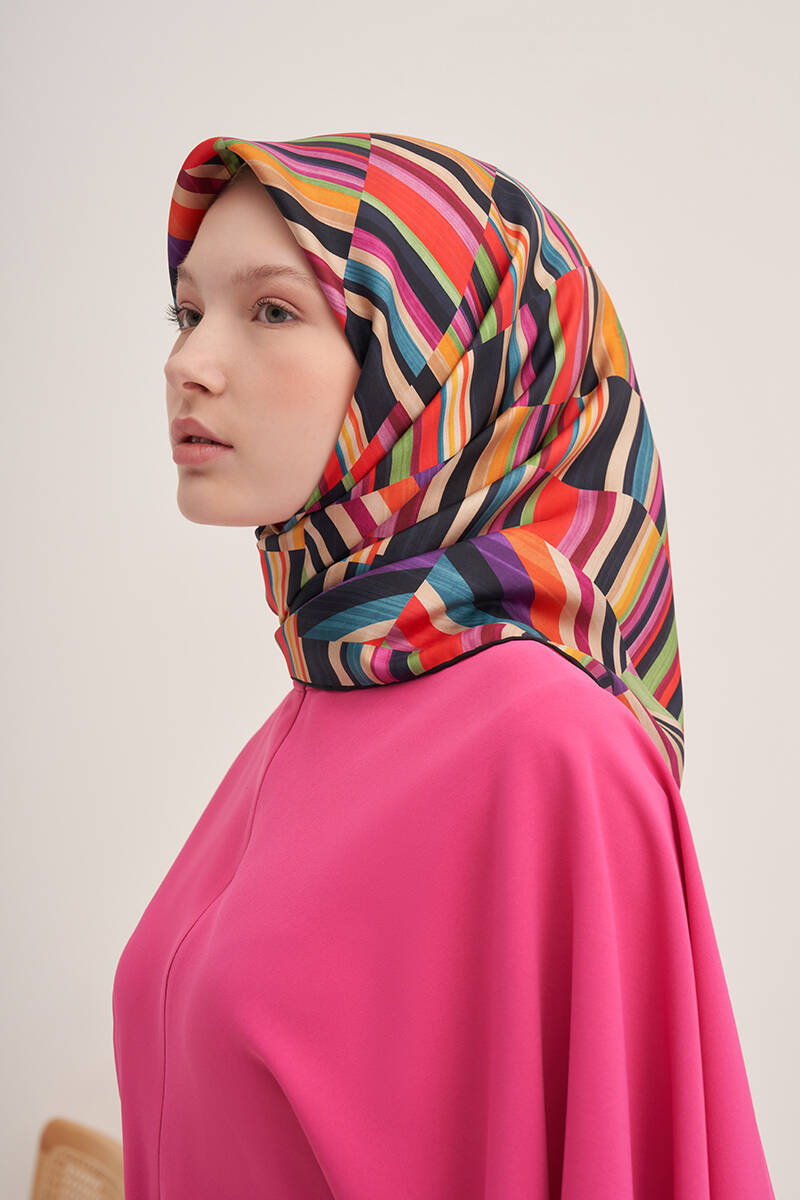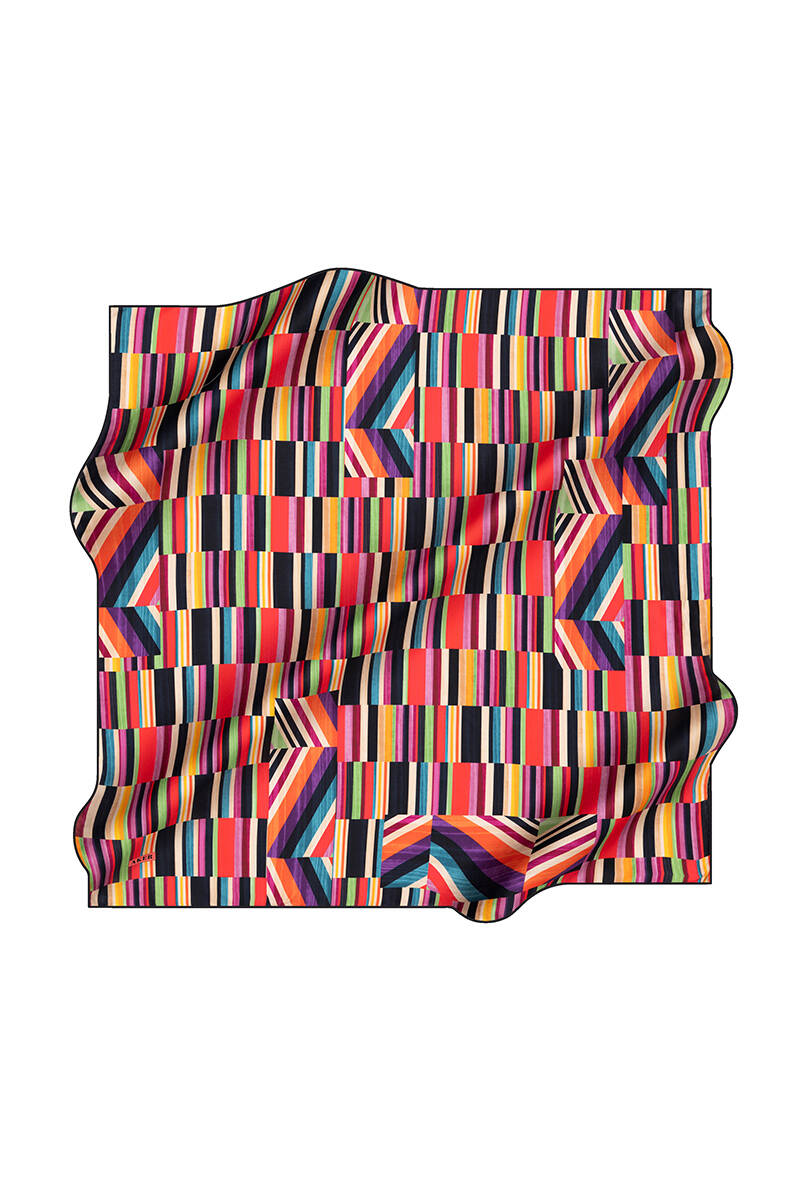 Geometrik Desenli Aker İpek Krep Saten Eşarp