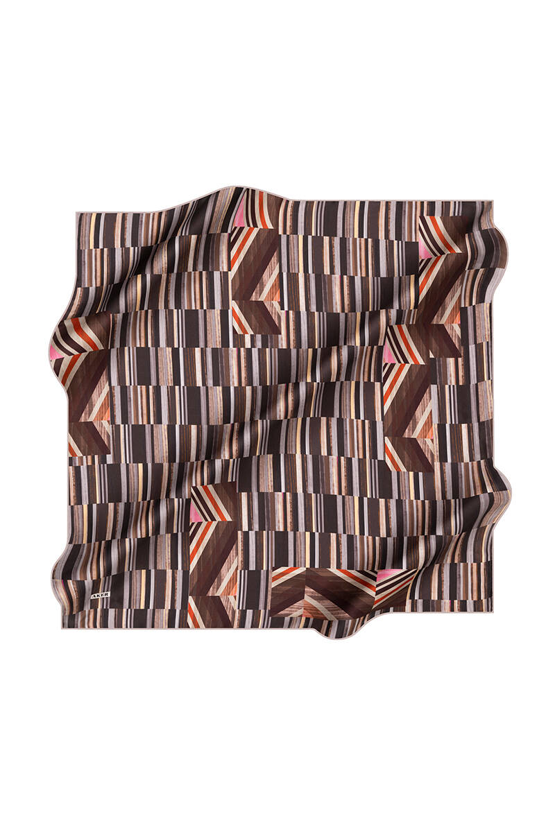 Geometrik Desenli 90X90 İpek Krep Saten Eşarp