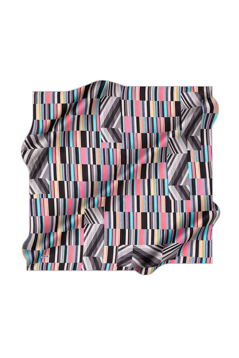 Geometrik Desenli 90X90 İpek Krep Saten Eşarp