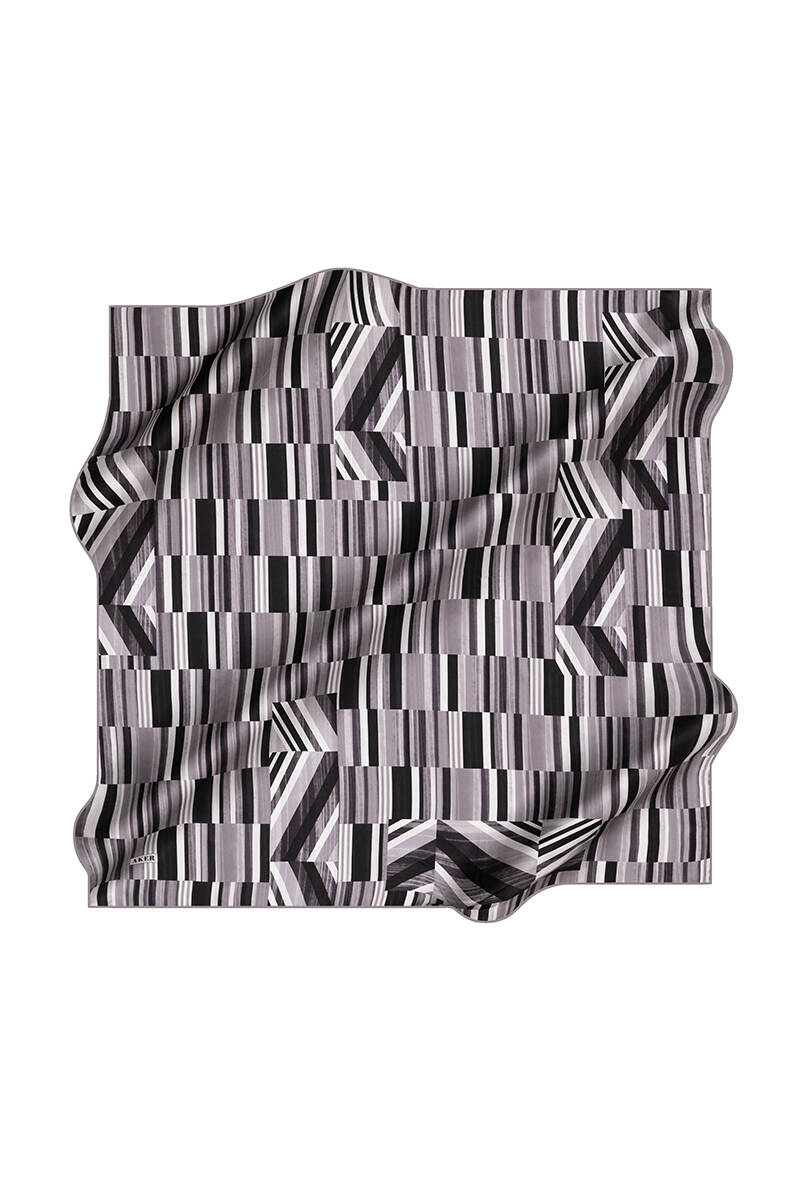 Geometrik Desenli 90X90 İpek Krep Saten Eşarp