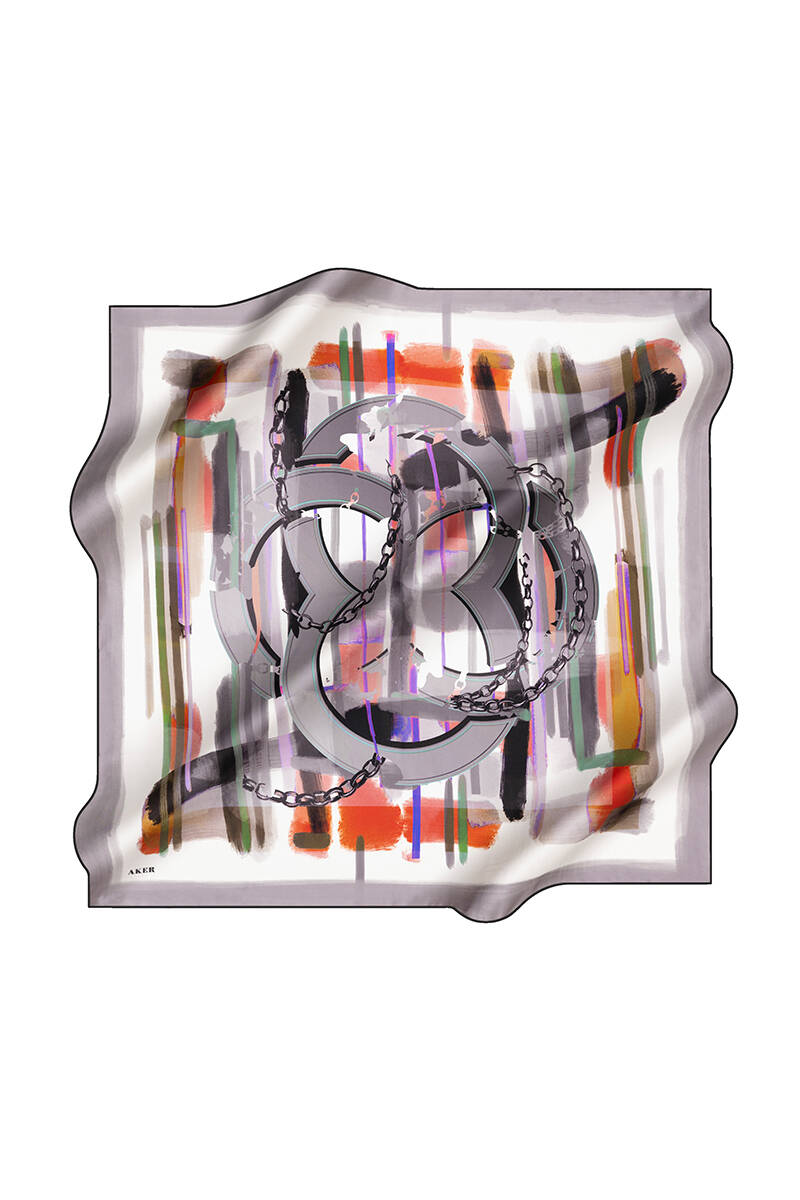 Logo Desenli 90X90 İpek Krep Saten Eşarp