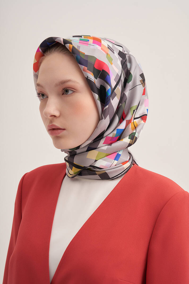Geometrik Desenli Aker İpek Krep Saten Eşarp