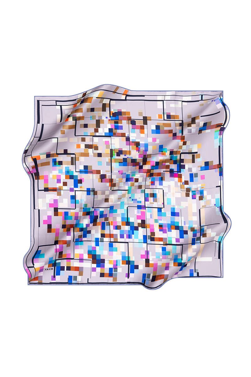Geometrik Desenli Aker İpek Krep Saten Eşarp