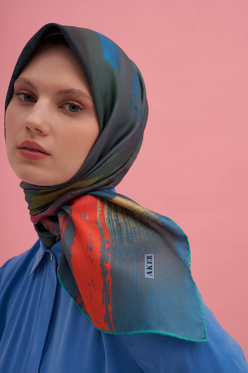 Fırça Desenli Aker İpek Krep Saten Eşarp