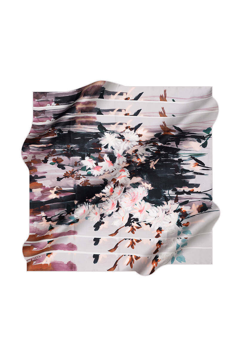 Çiçek Desenli Aker İpek Krep Saten Eşarp