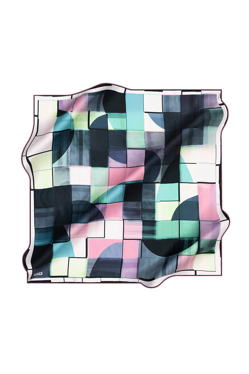 Geometrik Desenli 90X90 İpek Krep Saten Eşarp