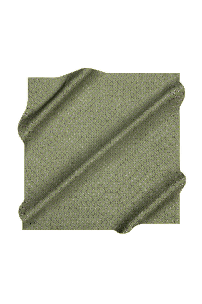 Logo Desenli 90X90 İpek Krep Saten Eşarp