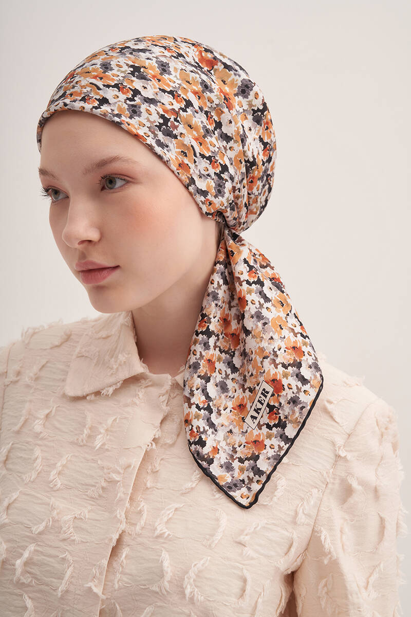 Çiçek Desenli 90X90 İpek Krep Saten Eşarp