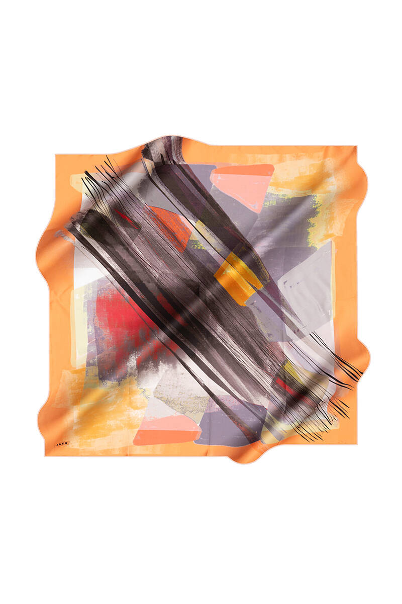 Geometrik Desenli 90X90 İpek Krep Saten Eşarp