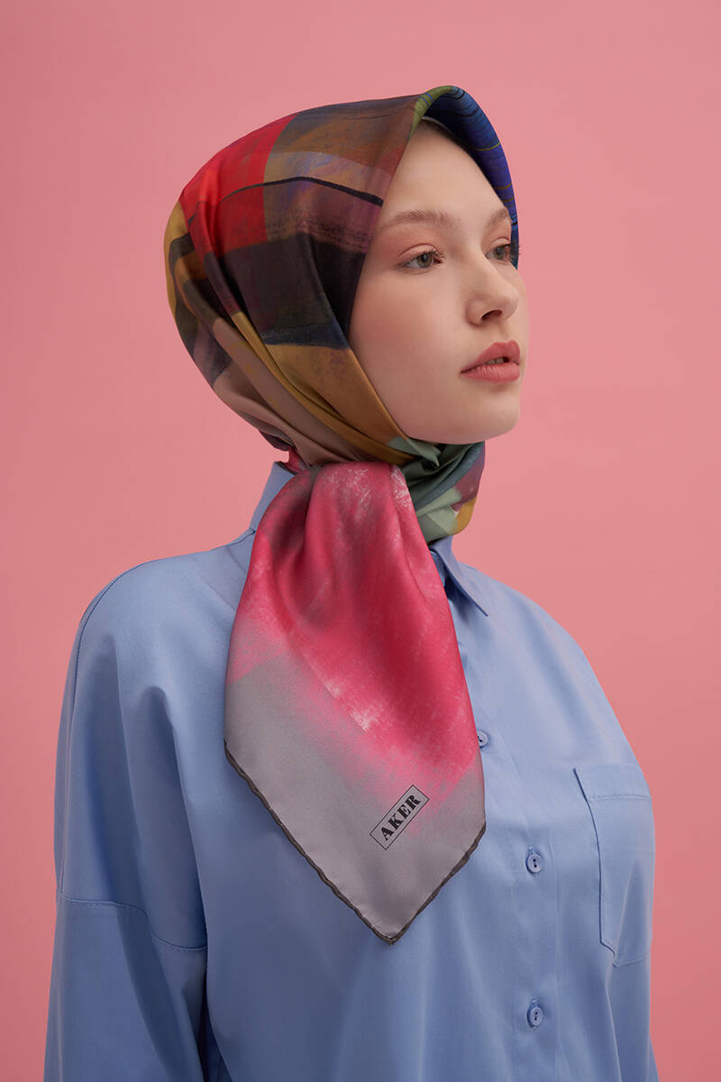 Fırça Desenli Aker İpek Krep Saten Eşarp