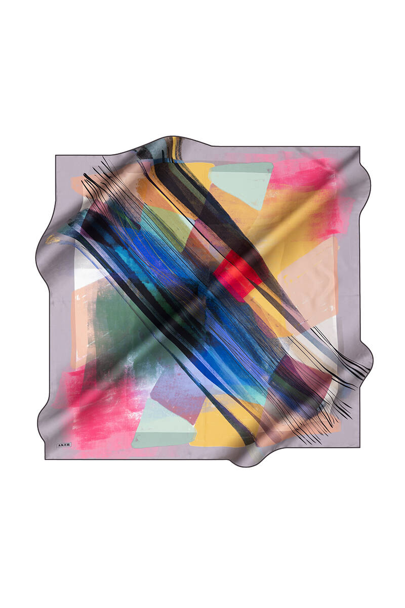 Geometrik Desenli 90X90 İpek Krep Saten Eşarp
