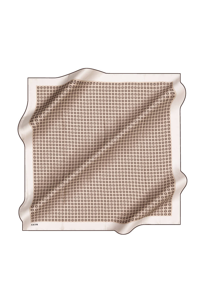 Logo Desenli Aker İpek Krep Saten Eşarp