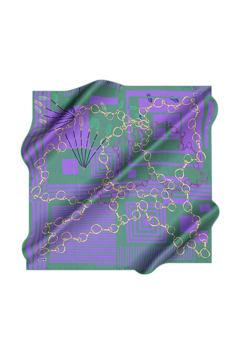 Zincir Desenli İpek Krep Saten Eşarp