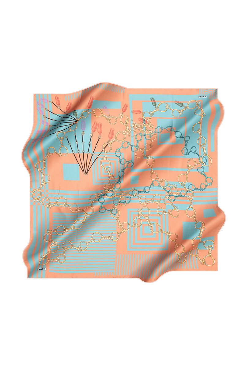 Logo Desenli 90X90 İpek Krep Saten Eşarp