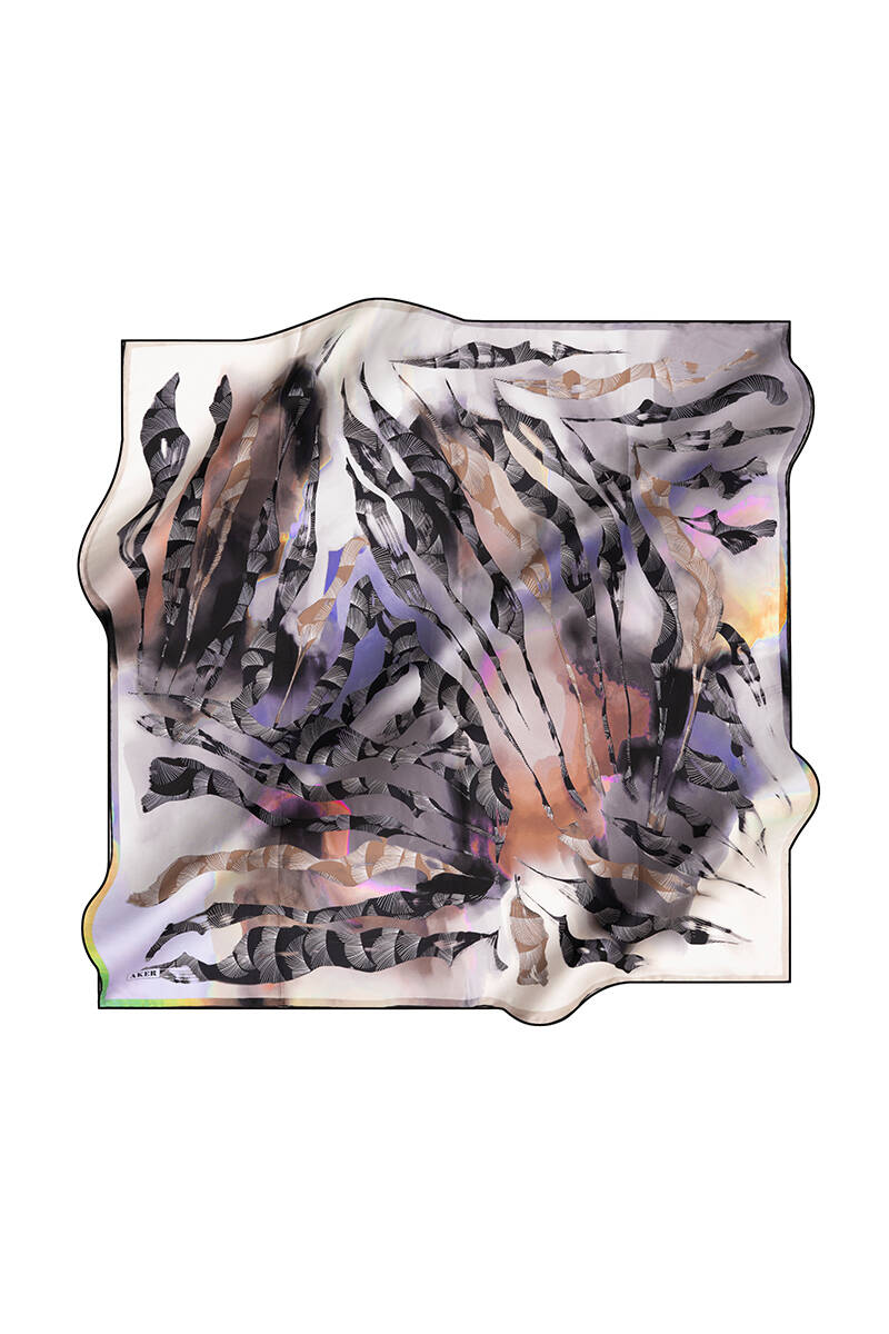 Geometrik Desenli Aker İpek Krep Saten Eşarp