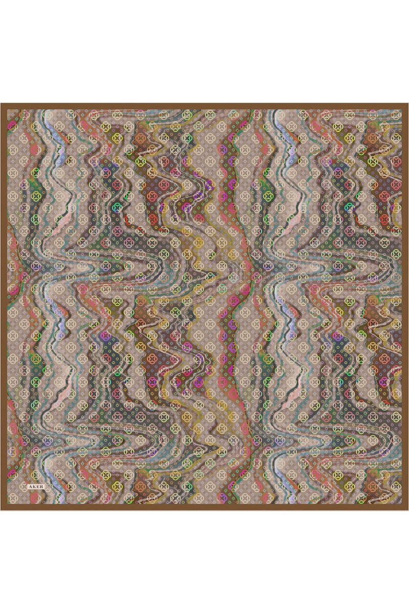 Logo Desenli 90X90 İpek Krep Saten Eşarp