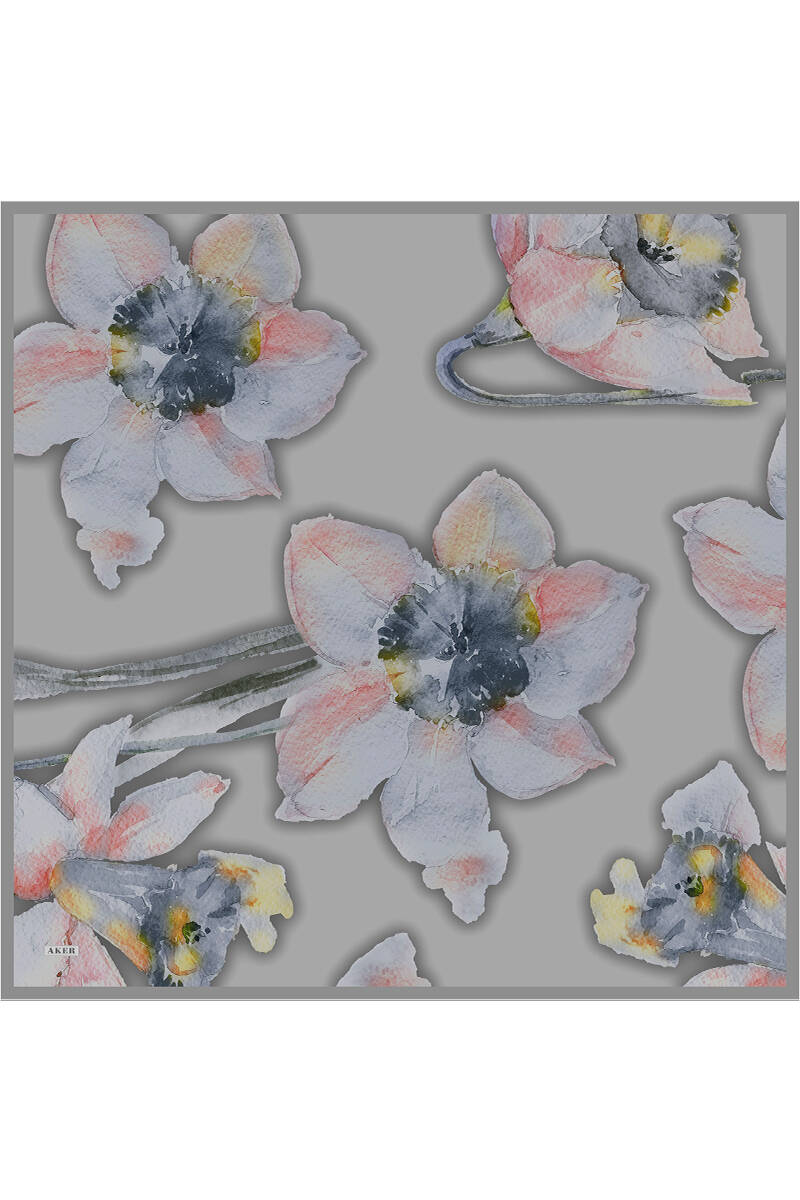 Çiçek Desenli 90X90 İpek Krep Saten Eşarp