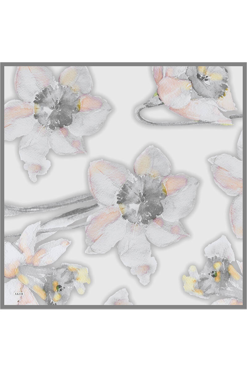 Çiçek Desenli 90X90 İpek Krep Saten Eşarp