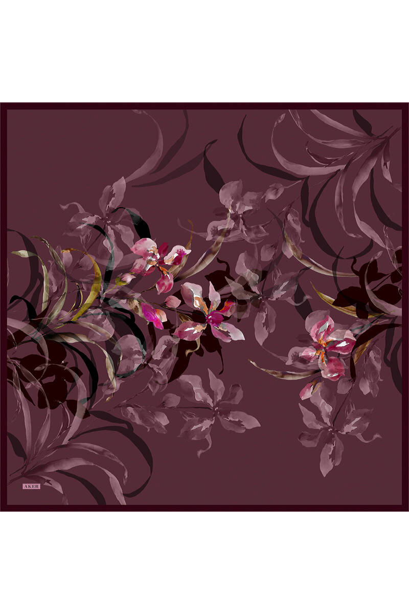 Çiçek Desenli 90X90 İpek Krep Saten Eşarp