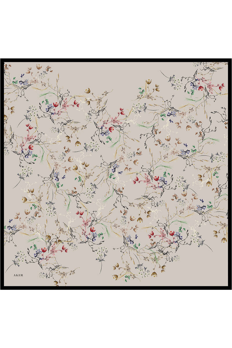 Çiçek Desenli 90X90 İpek Krep Saten Eşarp