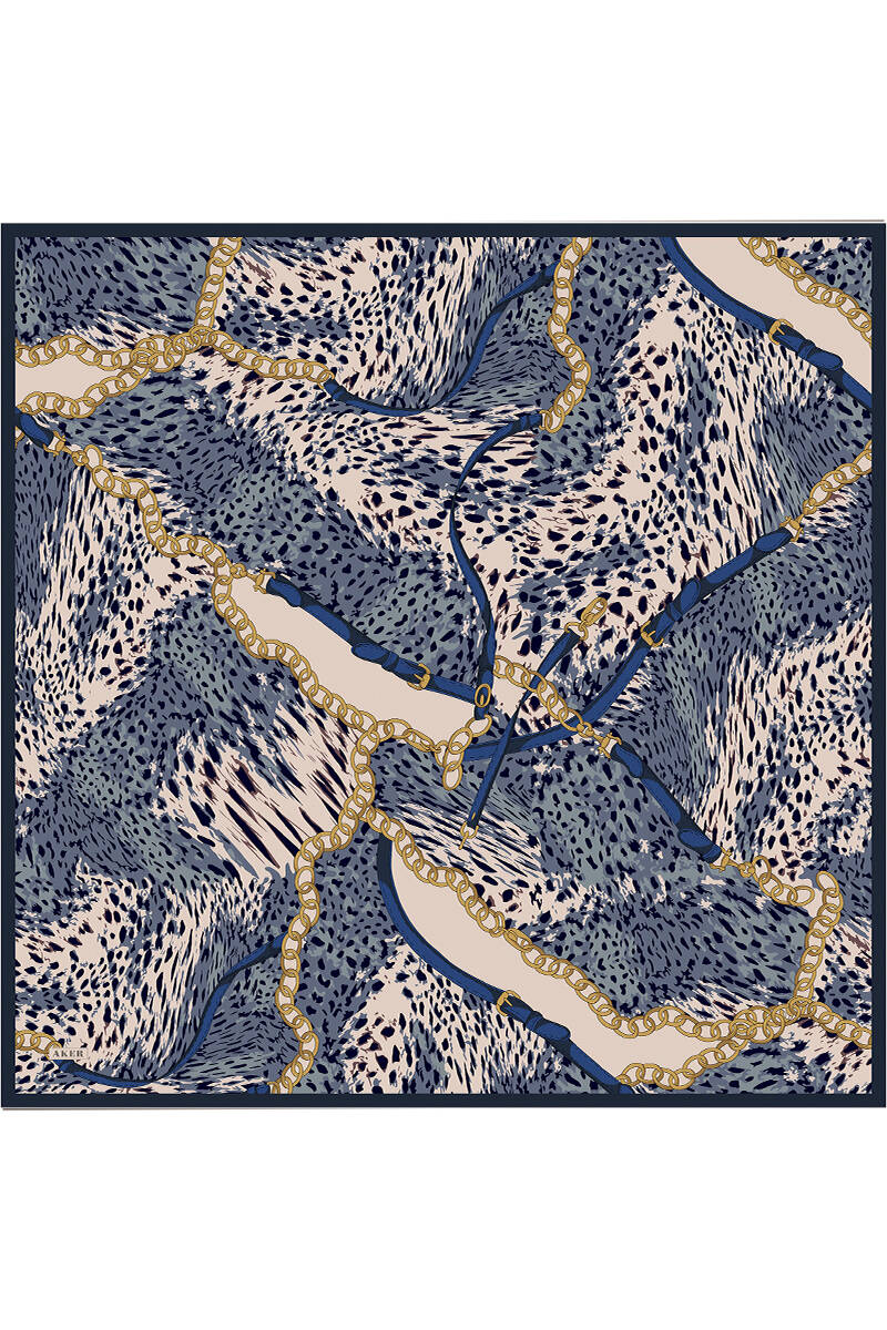 Geometrik Desenli 90X90 İpek Krep Saten Eşarp